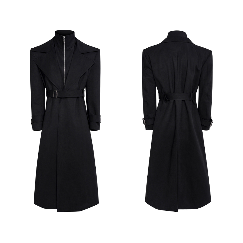 Mens Red Faux Two-Piece Suede-Look Padded Thicker Long-Style Wool Trench Coat