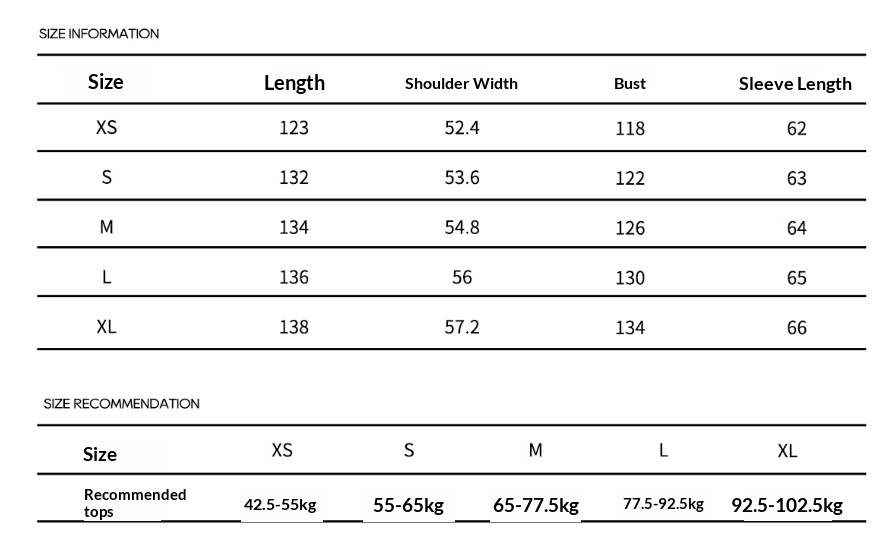 Sizes: XS, S, M, L, XL
